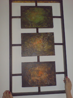Uma amiga minha vai-se casar e embora tenha decidido fazê-lo sem a presença de amigos, quer reuni-los após o dia de casamento, ao que chamou de "lanche festivo" para comemoração do mesmo. Vai ser daqui a duas semanas. Como sei que gosta dos meus quadros, decidi oferecer-lhe um feito em especial para este dia. Cores terra, como a terra mãe que nos acolhe, terra mãe, terra protectora. A foto está péssima, mas foi o que se arranjou...