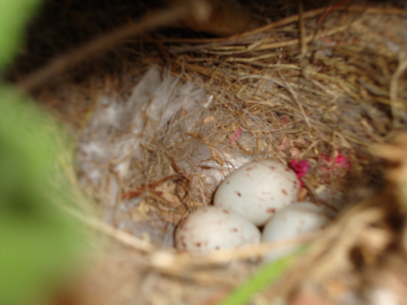 Eis o ninho feito numa grande azáfama, sem perder tempo: Até foi debicar no meu tapete, para tirar fios para a sua construção :)